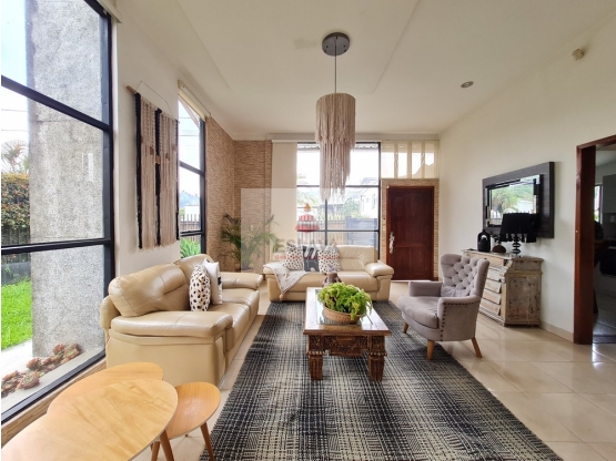 Propiedad con confortables espacios y lindos jardines, zonas verdes, terraza deck cubierta con jacuzzi, parqueadero para 5 vehículos.